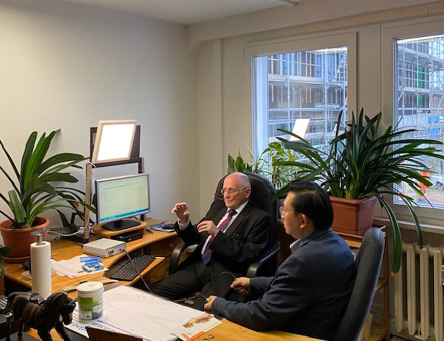 Weiterhin wurden innovative Systeme von MITI-Partnern präsentiert, die ein reges Interesse bei Herrn Wei fanden, z.B. im Gesundheitsbereich AgilCare Pro und WeWhoThom: Er nahm die Wirkung dieser nebenwirkungsfreien additiven Medizin-Technologien durch Selbstanwendung im Labor zur Kenntnis. „Der Einsatz solcher Gerätesysteme sei in China von großer Bedeutung,insbesondere in ländlichen Räumen“, – so Herr Wei.