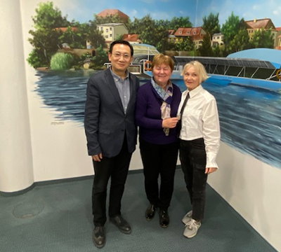 Erstes Kennenlernen mit dem Vertreter des Think Tank, Herrn Wei, VR China: Am linken Bild sind Herr Wei, die Bürgermeisterin der Stadt Strausberg, Frau Stadeler (Mitte), und Dr. Karasyova zu sehen.